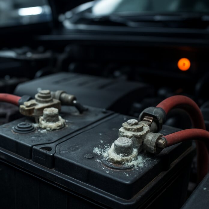 L’inspection visuelle de la batterie révèle souvent des indices de défaillance. Une substance blanchâtre ou verdâtre se forme autour des bornes. Cette corrosion résulte de réactions chimiques entre l’acide de la batterie et les connexions métalliques. Elle empêche le passage optimal du courant électrique et accélère la décharge.