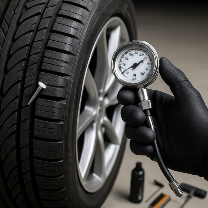 Mesurez la pression avec un manomètre fiable. Si la pression reste supérieure à 1,5 bar et se stabilise, vous pouvez envisager un déplacement prudent. Une chute rapide de pression indique une perforation importante nécessitant une immobilisation du véhicule.