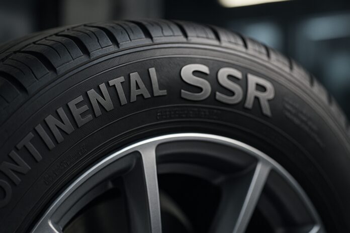 Les pneus Continental runflat portent systématiquement la mention « SSR » (Self-Supporting Runflat) en lettres majuscules. Cette indication apparaît à proximité de la dimension du pneu et des indices de charge et de vitesse.