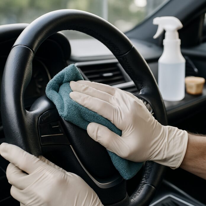 Commencez par passer un chiffon microfibre sec sur toute la surface du volant pour retirer la poussière et les particules libres. Inspectez attentivement l’état général du cuir : recherchez les fissures, les zones décolorées ou les coutures abîmées. Cette étape permet d’adapter votre technique de nettoyage aux zones fragiles.