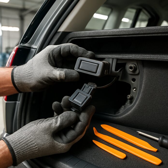 Avant de remonter la garniture, effectuez plusieurs tests du commutateur. Actionnez l’ouverture du coffre depuis la télécommande, puis depuis le bouton intérieur du véhicule, et enfin depuis le commutateur extérieur.