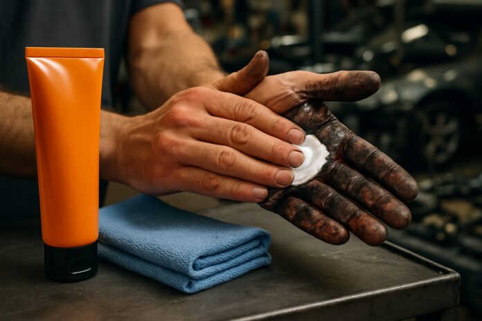 La pâte nettoyante pour mécanicien est un produit concentré qui existe depuis des décennies dans les ateliers. Prélevez une quantité équivalente à une noix et malaxez dans vos mains sèches.
