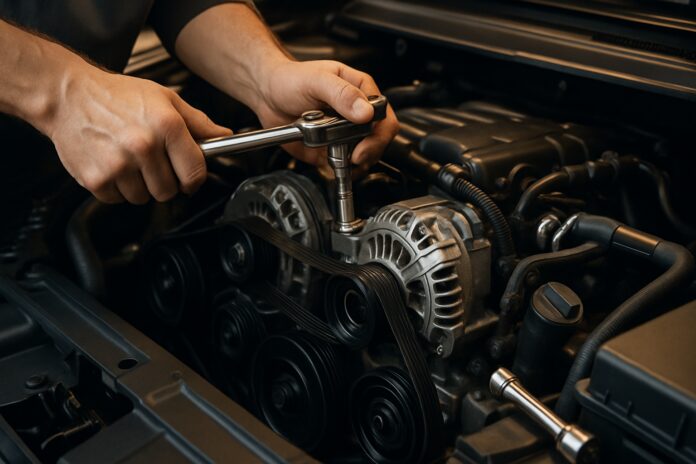 Astuce professionnelle : Marquez toujours la position initiale du galet tendeur ou de l’alternateur avec un marqueur avant tout démontage. Cela vous servira de point de référence pour le réglage.