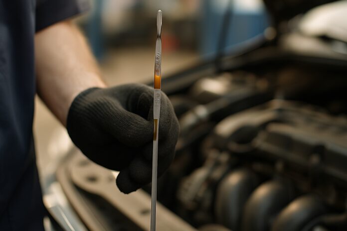 La vérification du niveau d’huile suit une procédure simple mais rigoureuse pour obtenir une lecture précise.