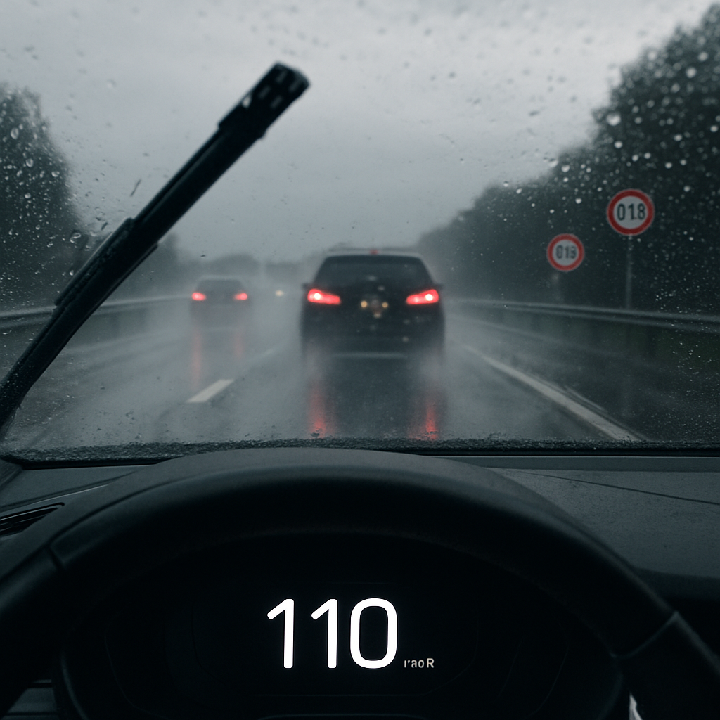 La limitation de vitesse en cas de pluie en France impose une réduction de 20 km/h sur autoroutes (110 km/h au lieu de 130 km/h) et voies rapides (100 km/h au lieu de 110 km/h), et 10 km/h sur routes nationales (80 km/h au lieu de 90 km/h). Cette mesure vise à compenser l’allongement des distances de freinage et la réduction de visibilité causés par la pluie.