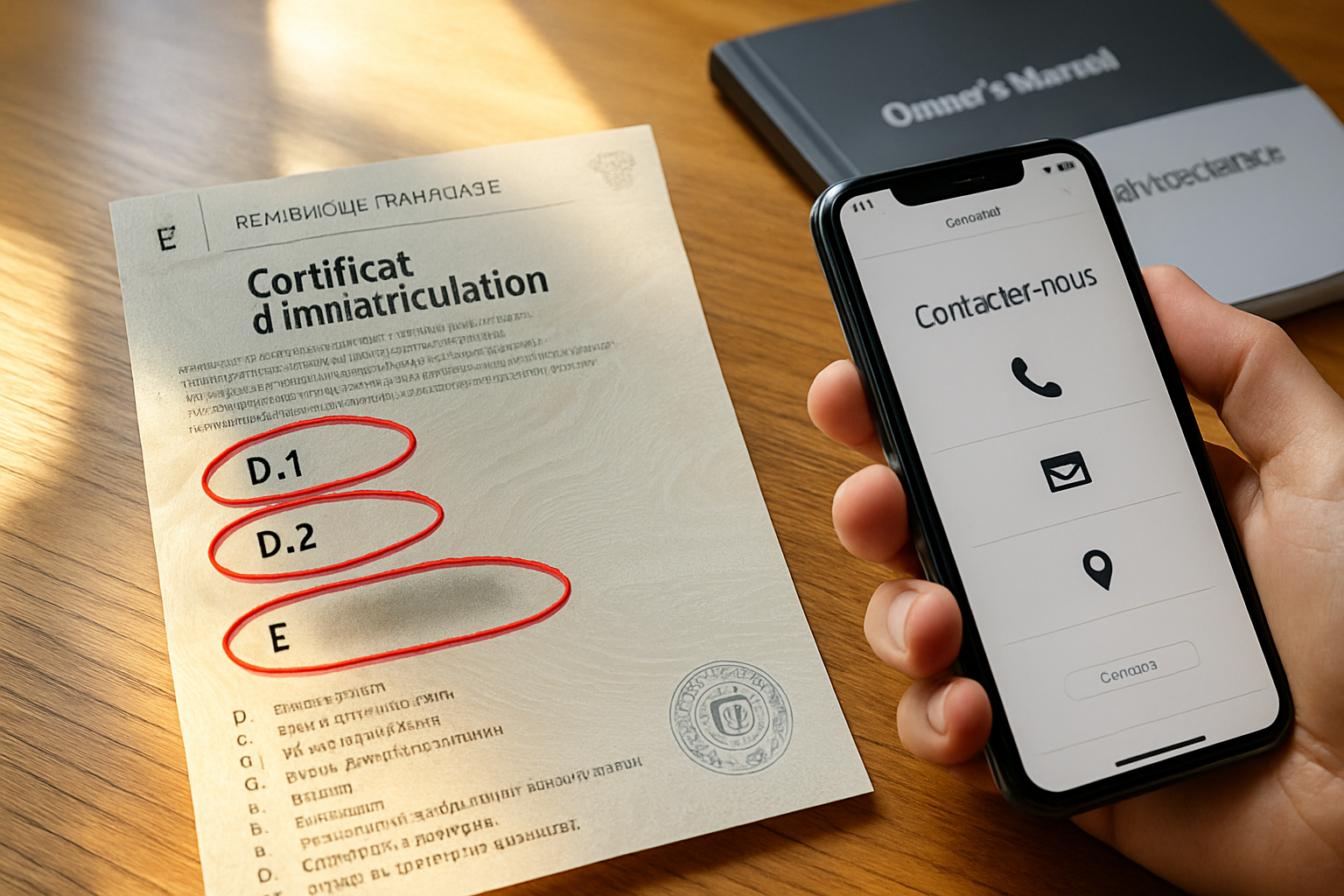 La première étape consiste à regarder le repère D.1. Cette case indique la marque en toutes lettres. Cette information suffit généralement pour retrouver n’importe quelle coordonnée via une simple recherche internet.