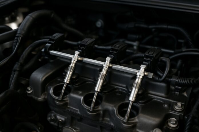 Cette barre d’alimentation, appelée rail de préchauffage, distribue le courant électrique à chaque bougie simultanément. Elle constitue un excellent repère visuel pour les localiser rapidement.