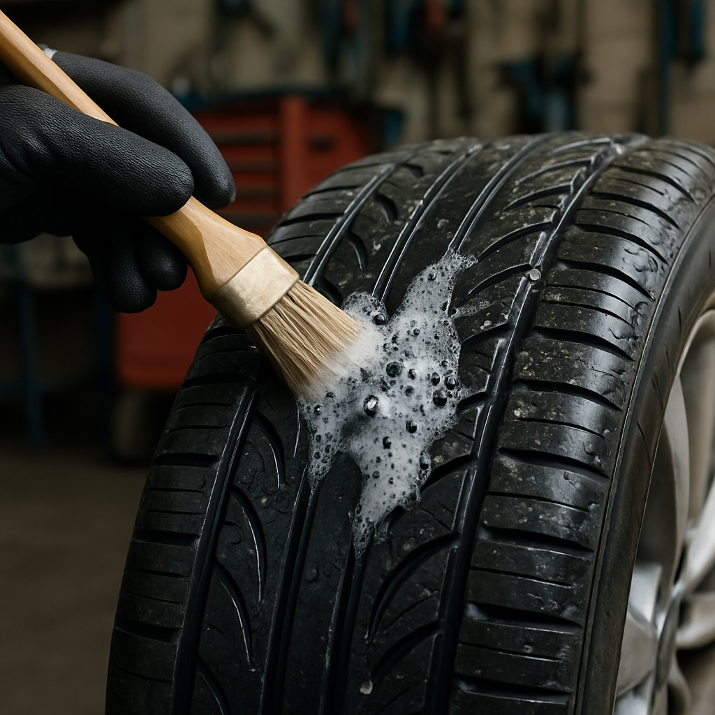 Mélangez du liquide vaisselle avec de l’eau dans une bassine. Appliquez cette solution sur toute la circonférence du pneu, la valve, et le pourtour de la jante. Les bulles révèlent instantanément les points de fuite. Cette technique fonctionne même pour les perforations microscopiques invisibles à l’œil nu.