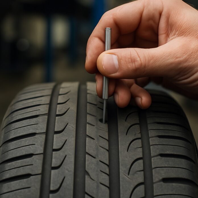 Pour mesurer précisément la profondeur, vous pouvez utiliser une jauge de profondeur ou simplement une pièce de 1 euro : si la bordure dorée reste visible quand vous insérez la pièce dans la rainure, vos pneus nécessitent un remplacement.