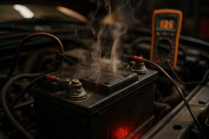 Sur le plan sécurité, une batterie surchauffée peut dégager des vapeurs toxiques. L’hydrogène produit lors de la charge devient explosif dans certaines conditions. Les cas d’incendie sous capot, bien que rares, commencent souvent par une batterie défaillante.
