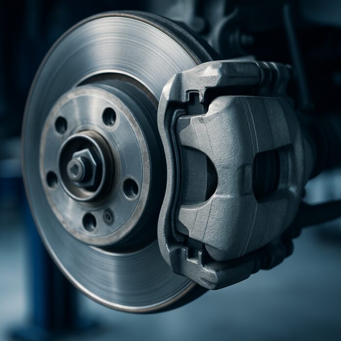 Un étrier de frein grippé maintient une pression constante sur les plaquettes. Cette friction continue provoque surchauffe et couinement. Les pistons doivent coulisser librement pour permettre un contact optimal.