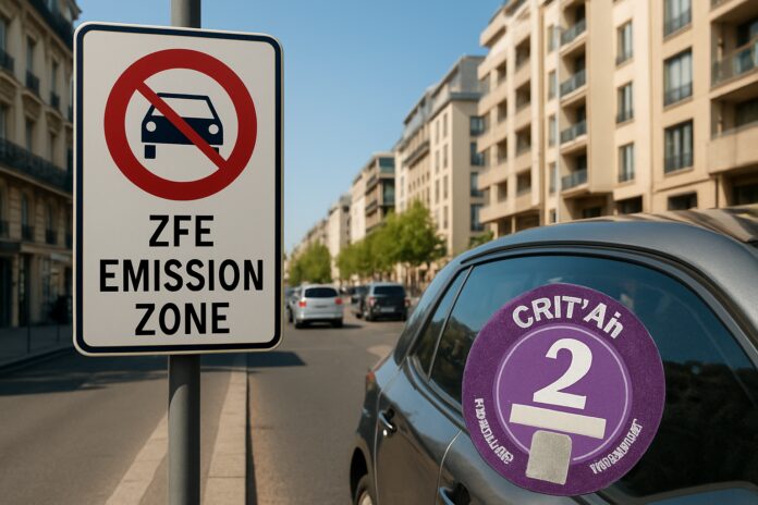 Le système repose sur la vignette Crit’Air, un autocollant qui classe les véhicules selon leur niveau de pollution. Six catégories existent, allant de Crit’Air 0 (véhicules électriques et hydrogène) à Crit’Air 5 (véhicules les plus polluants). Les véhicules sans classification ou trop anciens n’ont droit à aucune vignette.