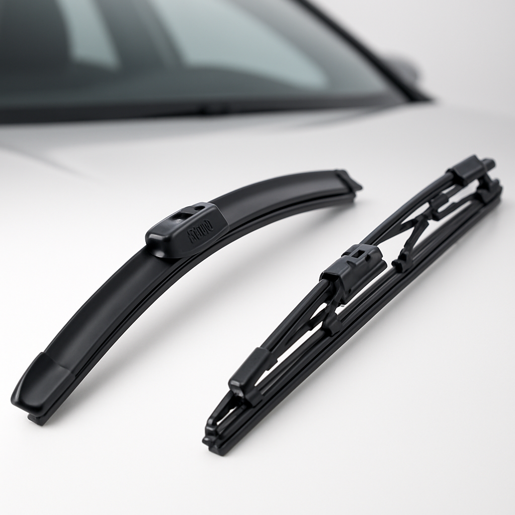 L’armature en acier galvanisé comporte 6 à 8 points de pression selon la longueur. La lame en caoutchouc synthétique traité résiste aux UV et aux variations thermiques. Le profilé aérodynamique réduit les turbulences et améliore le contact avec le pare-brise.